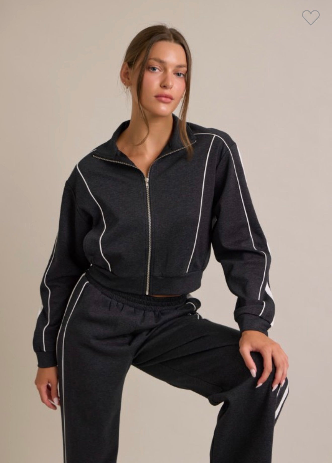 Charcoal piper track suit set model wearing size small